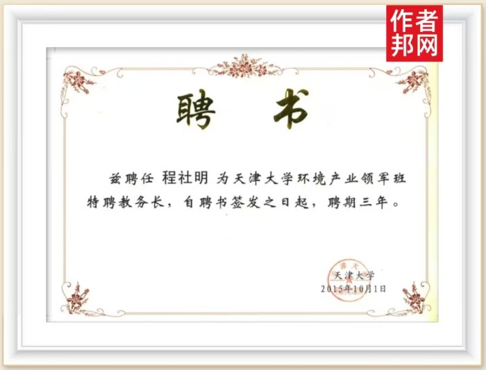 (程社明老师被聘任为“天津大学环境产业领军班特聘教务长”)