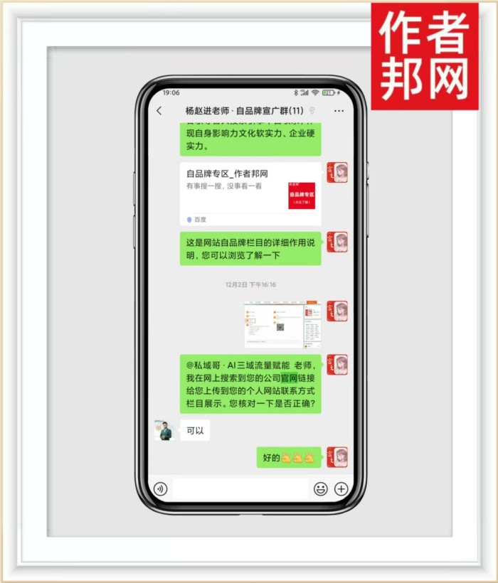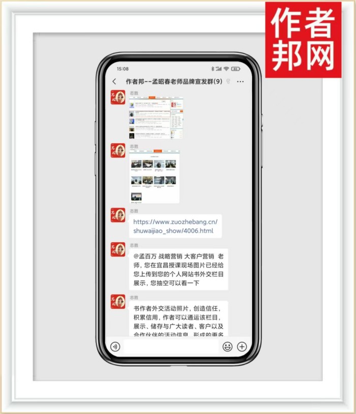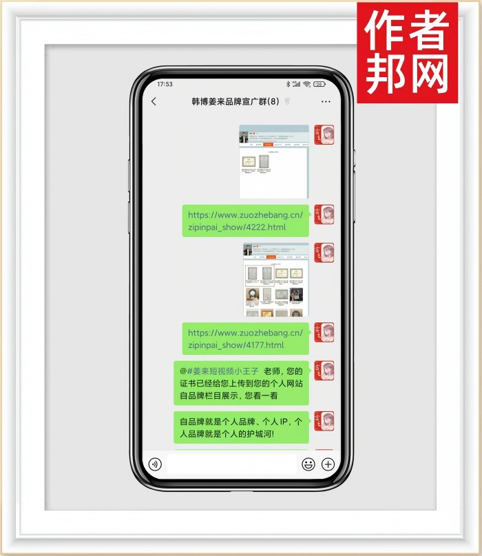 (到百度进入作者邦网,转发作者邦官网新闻中的“自品牌栏目”介绍链接到群里: https://zuozhebang.cn/alone_show.asp?id=71)