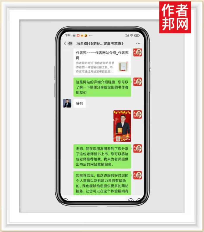 1.老师,我看您朋友圈分享过XX老师,他出版过书籍,您可以将这位老师推荐给我,由我们来提供网站营销服务,我们这边服务好对您也是一个很好的宣传帮助,您给我们推荐老师过来,我们也能够提供给您更多的服务资源 ,我们这个是免费入驻体验,您不用有顾虑