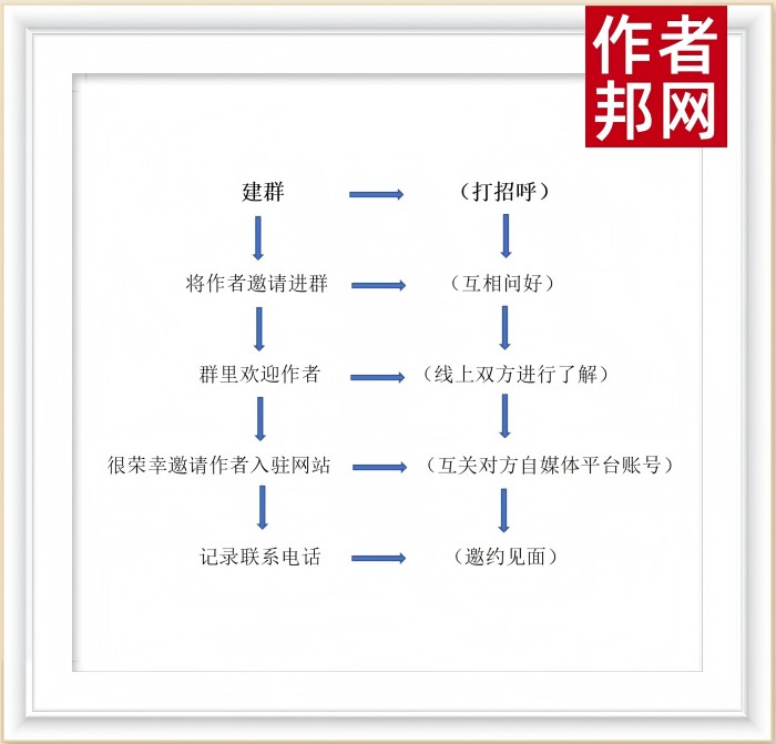 跟作者说明通过谁添加的新作者微信,并邀请入驻网站。