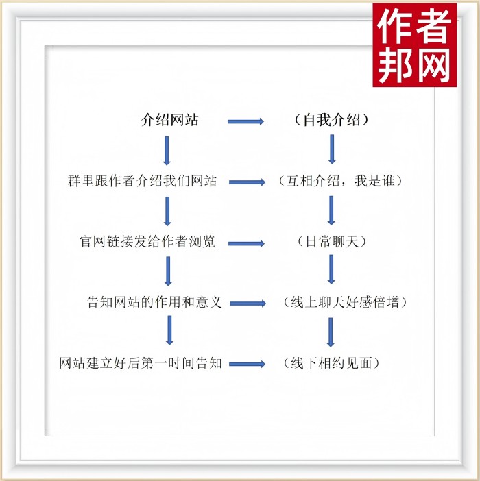 先与作者文字说明网站的作用和意义,接着将作者邦网站介绍和平台网站介绍链接发群以供作者浏览,链接里的文字说明更详细。