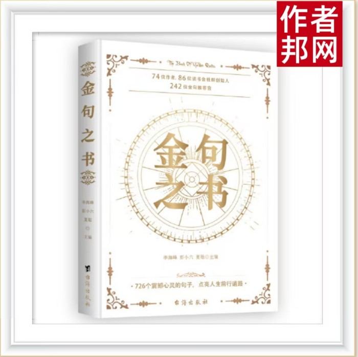 《金句之书》的收录,是对其价值的一种肯定。它不仅是三位作者智慧和情感的结晶,也是我们这个时代的宝贵财富。让我们在阅读中找到心灵的慰藉,获得智慧的启迪,感受情感的共鸣。愿《金句之书》能够成为每个人心中的明灯,照亮我们前行的道路。