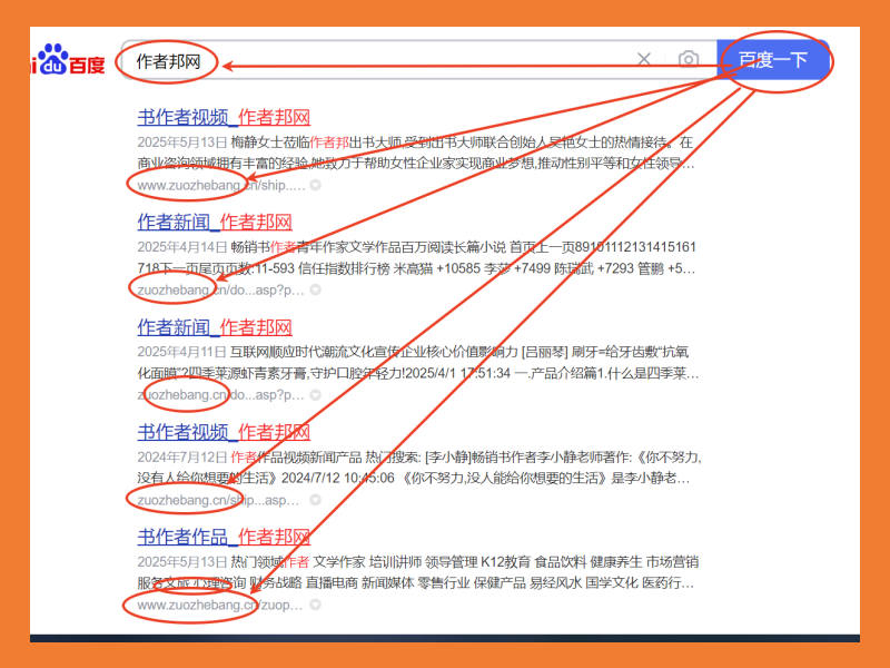 在互联网时代,搜索引擎是用户获取信息的第一入口。作者邦网通过系统化的SEO优化、内容矩阵布局及多渠道传播,成功实现百度搜索结果的全方位覆盖。无论是品牌介绍、服务案例、行业动态,还是用户评价,都能在搜索结果中清晰呈现。这种“霸屏效应”不仅提升了品牌曝光度,更增强了用户信任感——当潜在客户搜索“作者邦网”时,海量正面信息无疑会大大降低其决策成本,促使其更快选择作者邦的服务。