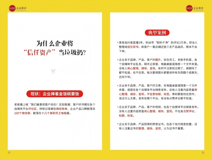 信任资产是企业积累的客户好评、荣誉证书、媒体报道、案例数据、社交口碑等一切能增强客户信心的内容。