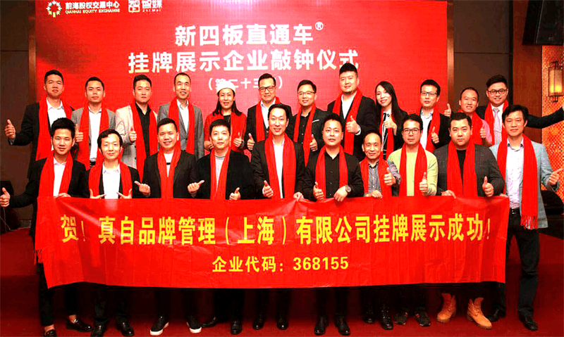 2018年1月22日,出书大师网母公司真自品牌管理(上海)有限公司,【企业代码368155】 ,在深圳前海股权交易中心成功举行挂牌敲钟仪式。据了解此次成功挂牌的还有来自全国各地的30多家企业。 孔斌国际集团董事长、出书大师网创始人孔斌先生,与真自品牌管理(上海)有限公司高层,及受邀嘉宾微商春晚创始人勇哥,微商领袖九哥,高盈量化云董事长吴超等,20多位合作单位、客户代表一同出席了挂牌仪式,共同见证这一里程碑式的重要时刻。挂牌仪式上,孔斌先先生向长期关心、支持真自品牌管理(上海)有限公司发展的各位金融界的领导、商界同行、客户、媒体朋友、和社会各界的朋友们表示衷心感谢。