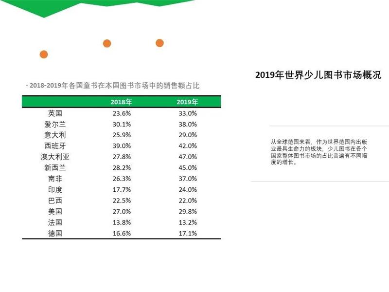 2019年,童书在各个国家整体图书市场的占比也普遍有不同幅度的增长;