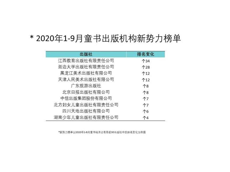 2020年1-9月童书出版机构新势力榜单