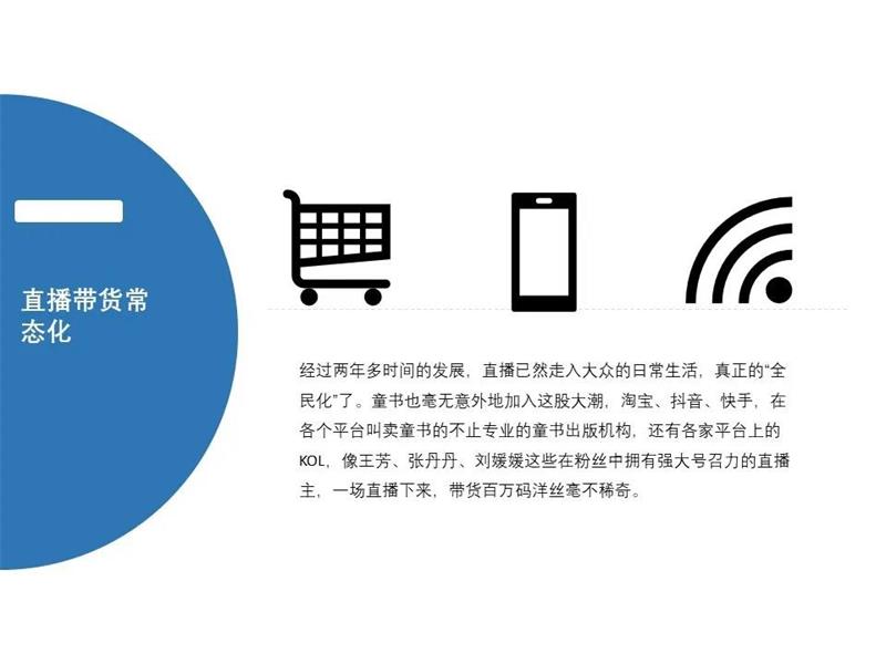 经过两年多时间的发展,直播已然走入大众的日常生活,真正的“全民化”了。童书也毫无意外地加入这股大潮,淘宝、抖音、快手,在各个平台叫卖童书的不止专业的童书出版机构,还有各家平台上的KOL,像王芳、张丹丹、刘媛媛这些在粉丝中拥有强大号召力的直播主,一场直播下来,带货百万码洋丝毫不稀奇。