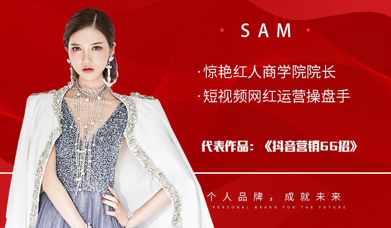 SAM老师是惊艳红人商学院院长、短视频网红运营操盘手。她的全网粉丝过亿,在巨大的粉丝经济加持下,每月光是短视频便可以为其带来3000万的价值红利。累计服务超过500个品牌方及微商团队长,旗下拥有10个以上流水上10亿顶级微商团队,服务学员超过80000名,在微商网红打造、培养、短视频引流、涨粉、转化、裂变;建立粉丝社群、品牌宣传;品牌赋能流量流变、团队代理裂变等环节,已形成了一个全周期的流量闭环,在同行业领域中独树一帜。