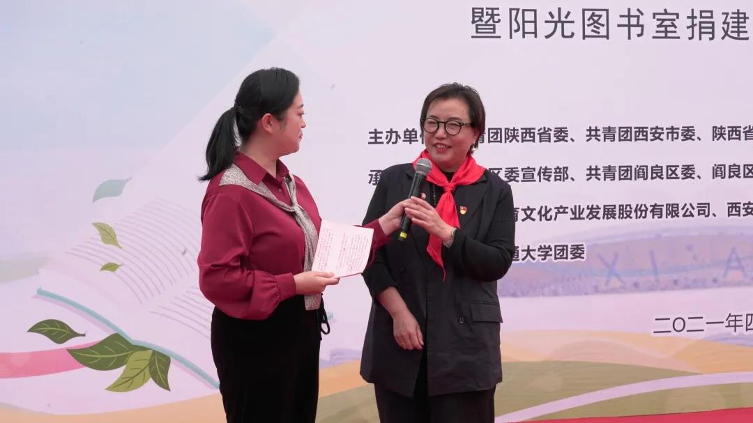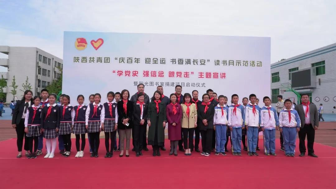 芳菲四月,正是读书好时节。在第26个“世界读书日”即将到来之际,4月19日下午,陕西共青团“庆百年 迎全运 书香满长安”读书月示范活动“学党史、强信念、跟党走”主题宣讲暨“阳光图书室”捐建项目启动仪式在阎良区西飞第一小学举行。