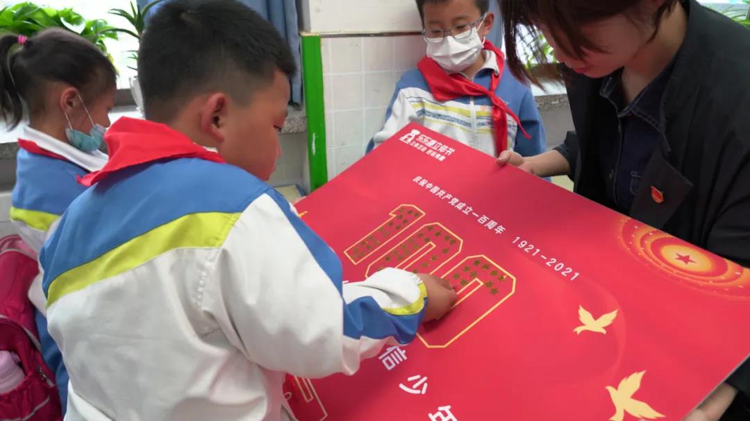 互动环节,同学们用一颗颗闪亮的星星,为党的百年华诞献礼!