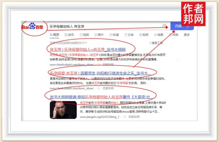 近日,乐孕母婴创始人肖玉萍书作者营销网站被360、搜狗、百度平台收录,在网络流量的助推下,其个人影响力红极一时,通过书作者营销网站对其个人品牌价值的解读和呈现,让更多的读者朋友予以关注和认知。