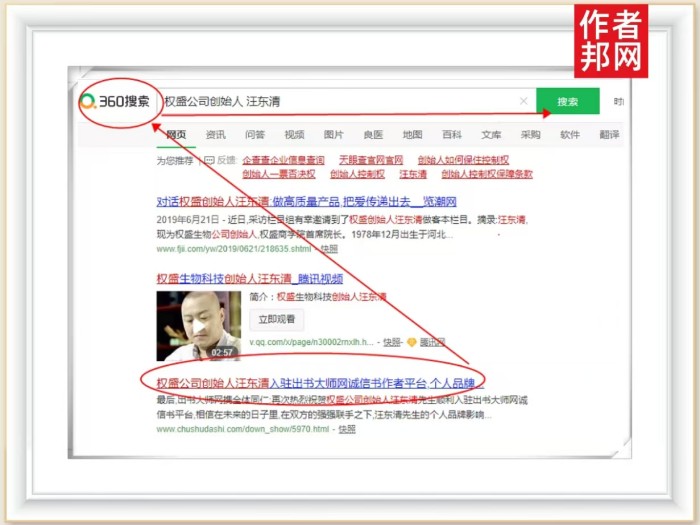 近日,依托于前期传播工作积淀,汪东清先生的自品牌成功被360、搜狗、百度平台永久收录、行业影响力再创新高。据了解,360、搜狗、百度百科三大平台在搜索结果中排名位于前列,极具权威性,只需在搜索框中输入其姓名,即在首页醒目的位置搜索到,网友只需点开链接,相关的新闻报道、个人简介、书籍信息等内容便一览无余,高效率完成自品牌流量导入,形成长期的商业回报和持久的社会影响力。