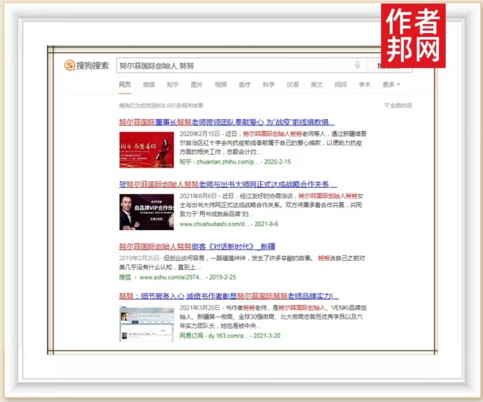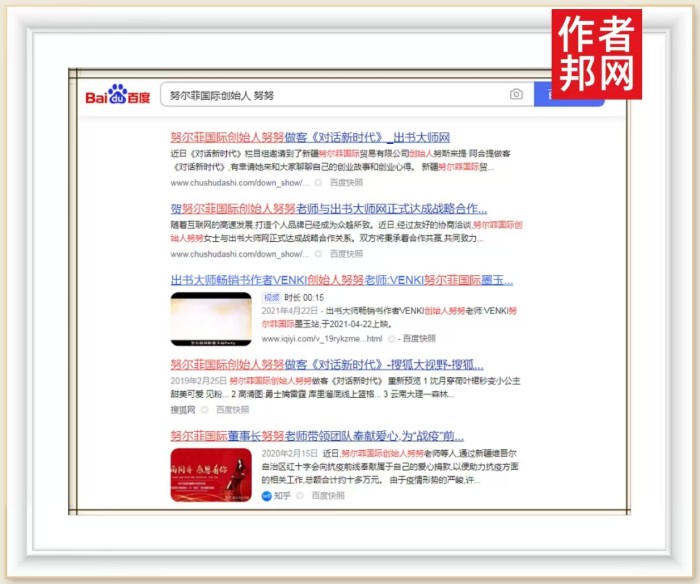 近日,努尔菲国际创始人努努书作者关键词霸屏360、搜狗、百度三大平台,社会影响力显著提升。这不仅是一种品牌价值的提升方式,更是一种全面展示品牌自身魅力的有效形式。努努书作者关键词登陆360、搜狗、百度供网友检索,能够为其带来丰厚的流量,大大提高个人品牌在广大网友心中的信任度和了解度,从而产生更多的业务流程转换率,提升企业知名度,增强企业形象。