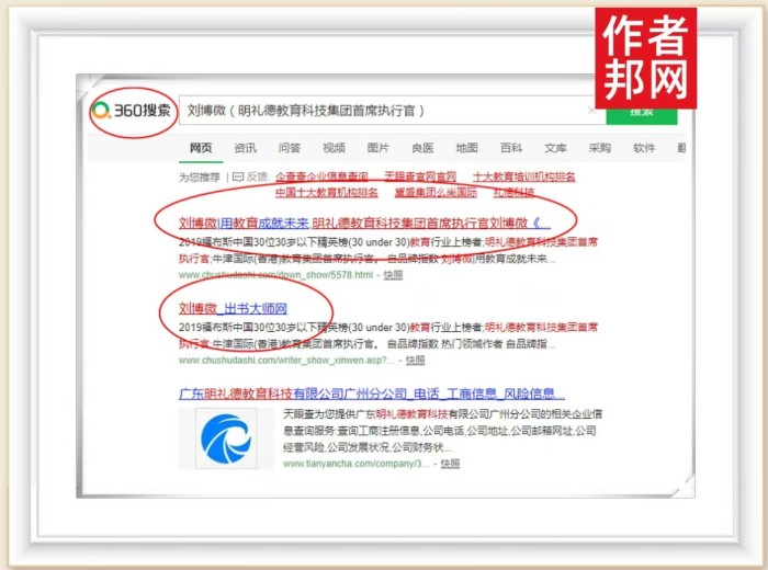 近日,明礼德教育科技集团首席执行官刘博微书作者关键词登顶360、搜狗、百度平台,带来了庞大的流量内容,粉丝读者只需在平台界面搜索“刘博微”相关关键词,便会跳转页面连接品牌信息,至此刘博微先生的行业知名度与品牌影响力广泛提升。