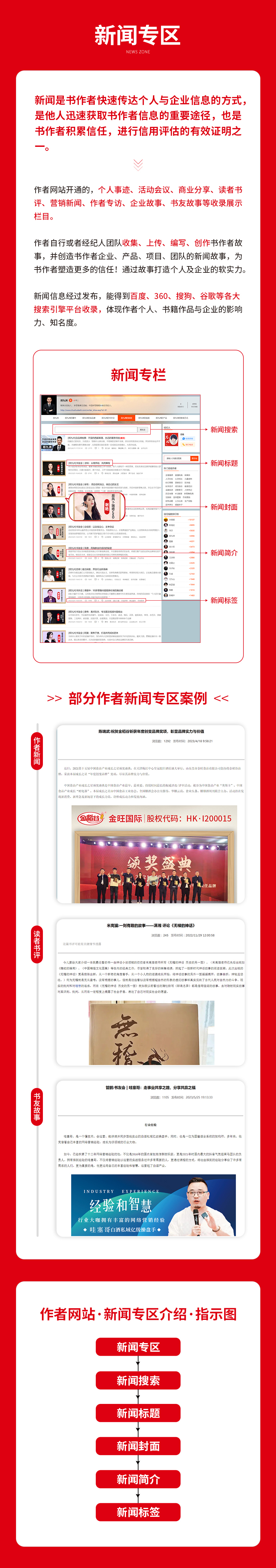 书作者来自各行各业,想要了解某位书作者的新闻实事,往往都会查询作者及其发布过的有关新闻文章信息。然而,目前市面上开放的平台关于作者的文章数据零散且信息并不多。而作者邦网,是一个可以免费查询,以及公开收录作者海量文章信息,并有专栏集中展示的大数据平台。