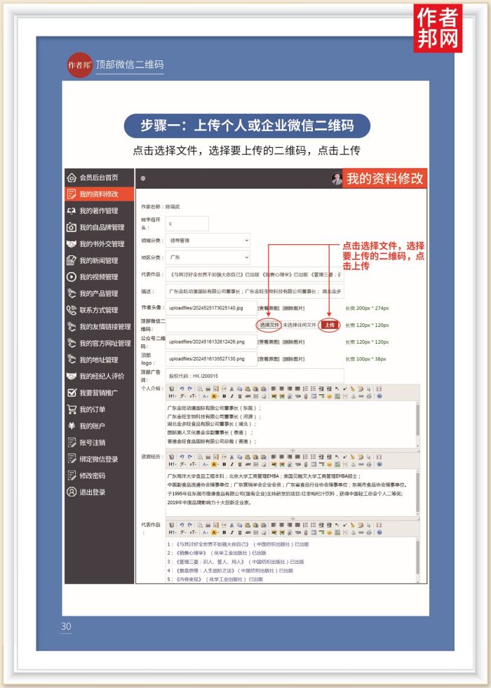 作者邦 | 书作者网站后台操作与详解——上传个人或企业微信二维码( 连载九)