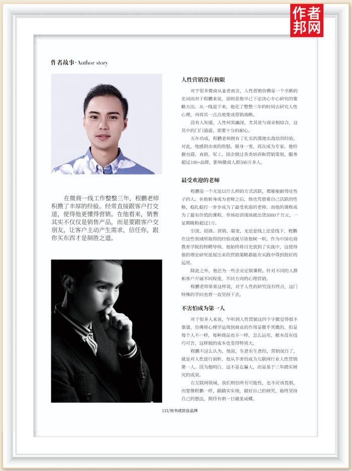 五年功成,程鹏老师拥有了扎实的落地实战培训经验对此,他感到由衷的欣慰,摇身一变,再次成为专家。他给微电商、直销、军工、国企做过各类培训和营销策划,服务超过100+品牌,影响微商人群500万多人。
