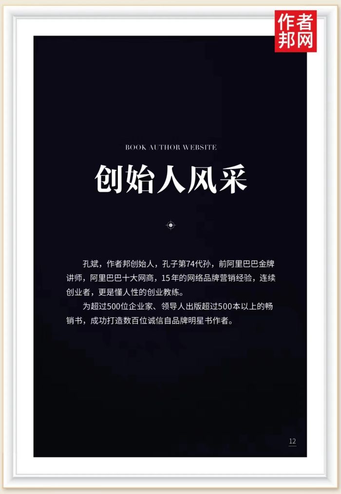 孔斌,作者邦创始人,孔子第74代孙,前阿里巴巴金牌讲师,阿里巴巴十大网商,15年的网络品牌营销经验,连续创业者,更是懂人性的创业教练。为超过500位企业家、领导人出版超过500本以上的畅销书,成功打造数百位诚信自品牌明星书作者。