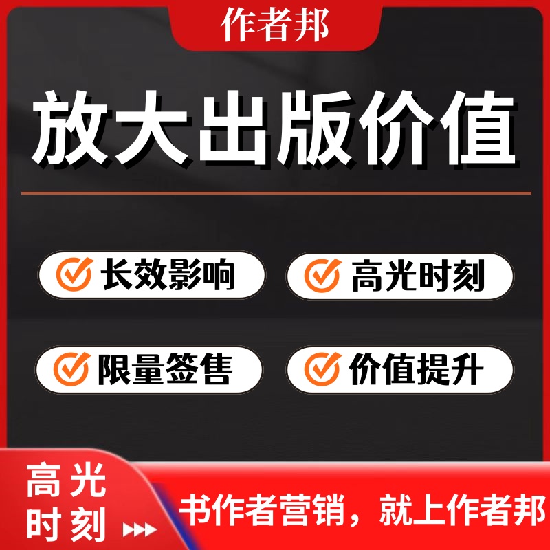 由作者邦专业团队牵头,为您精心组织一场30-50人的精品发布会,全面负责从前期策划、嘉宾邀约、流程设计、现场布置,到后期海报制作、媒体对接以及新闻宣发的所有环节。 一场成功的新书发布会,绝非简单的仪式,而是为您的作者生涯和作品价值进行的一次高效投资。我们负责搭建完美舞台,处理所有幕后工作,而您,只需专注于台前的闪耀。