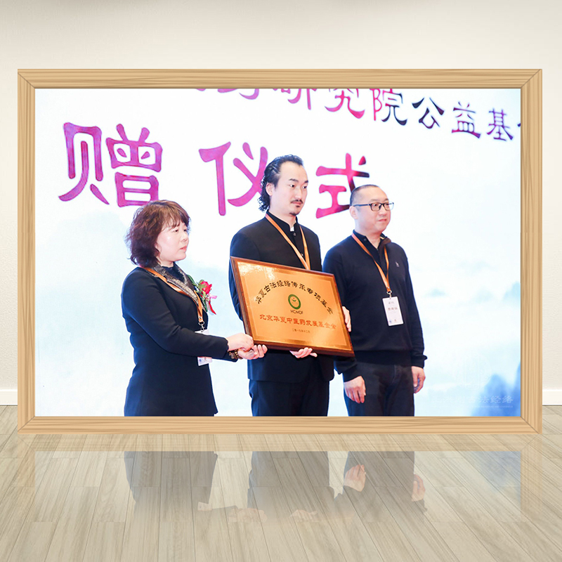 王洪刚: 北京学术交流会上,王洪刚主任与朱砚宁副主任作为代表,向北京华夏中医药发展基金会,执行秘书长乔利梅捐赠款项
