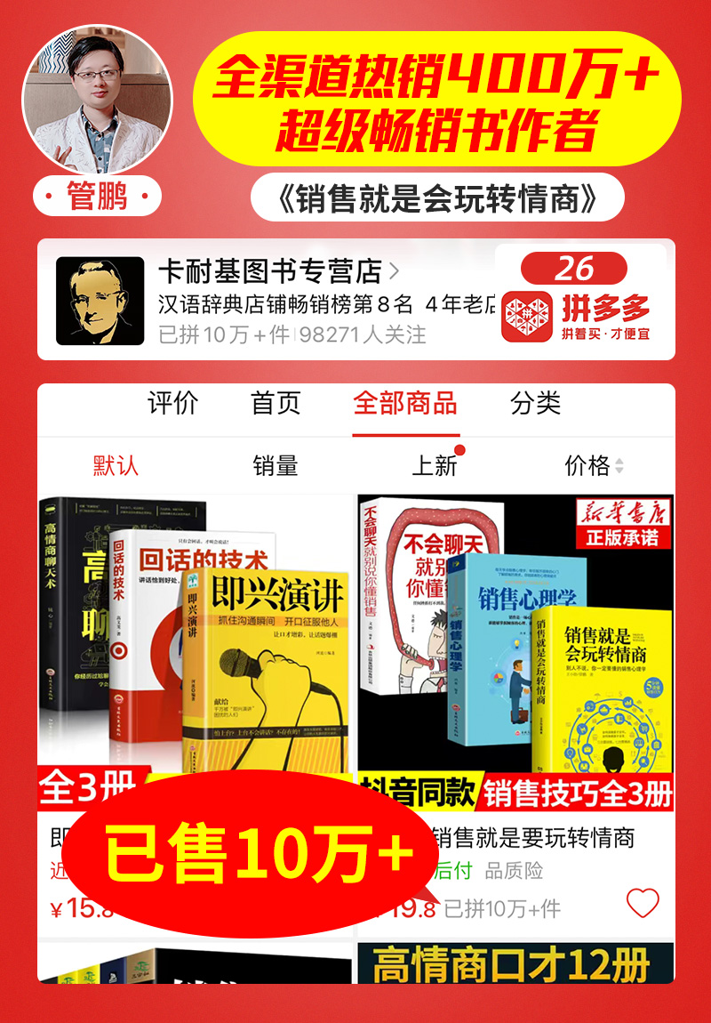 管鹏: 拼多多:卡耐基图书专营店,销量10万+册