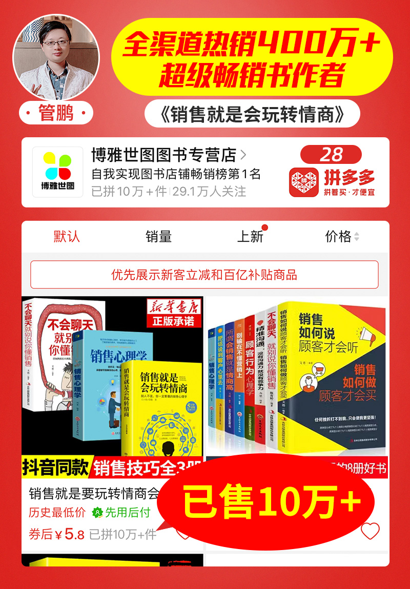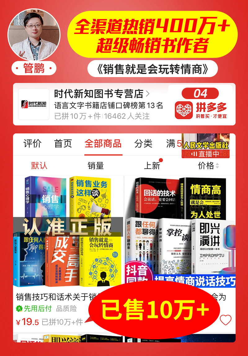 管鹏: 拼多多:联合图书专营店,销量10万+册