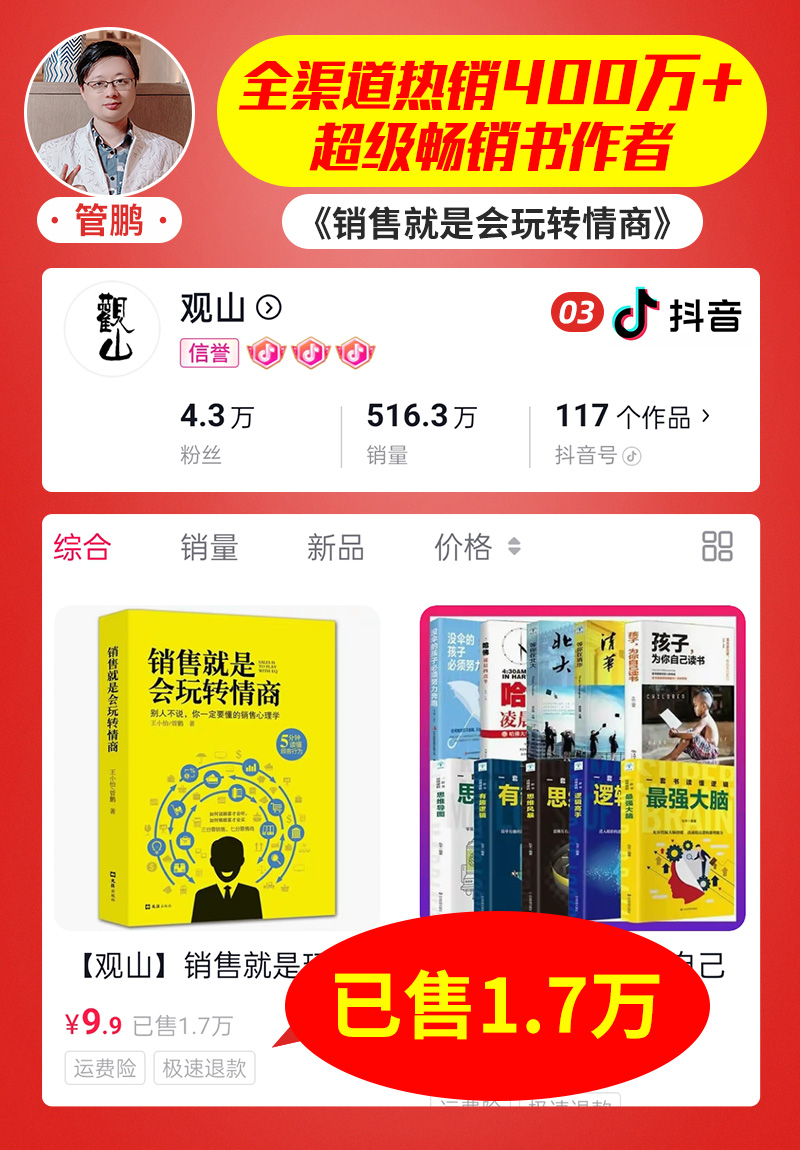 管鹏: 抖音:观山图书专营店,销量1.7万册
