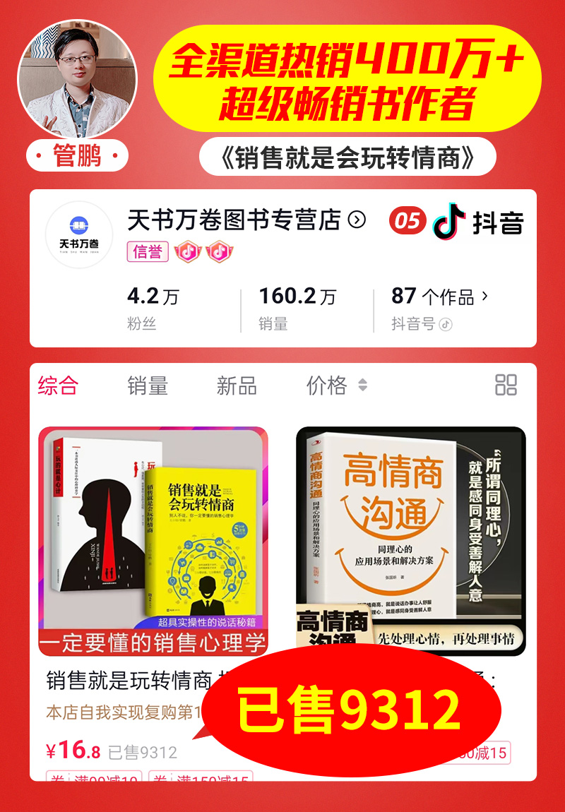管鹏: 抖音:天书万卷图书专营店,销量9312万册