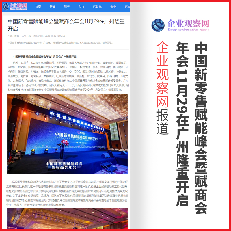 管鹏:中国新零售赋能峰会暨赋商会年会【企业观察网】报道