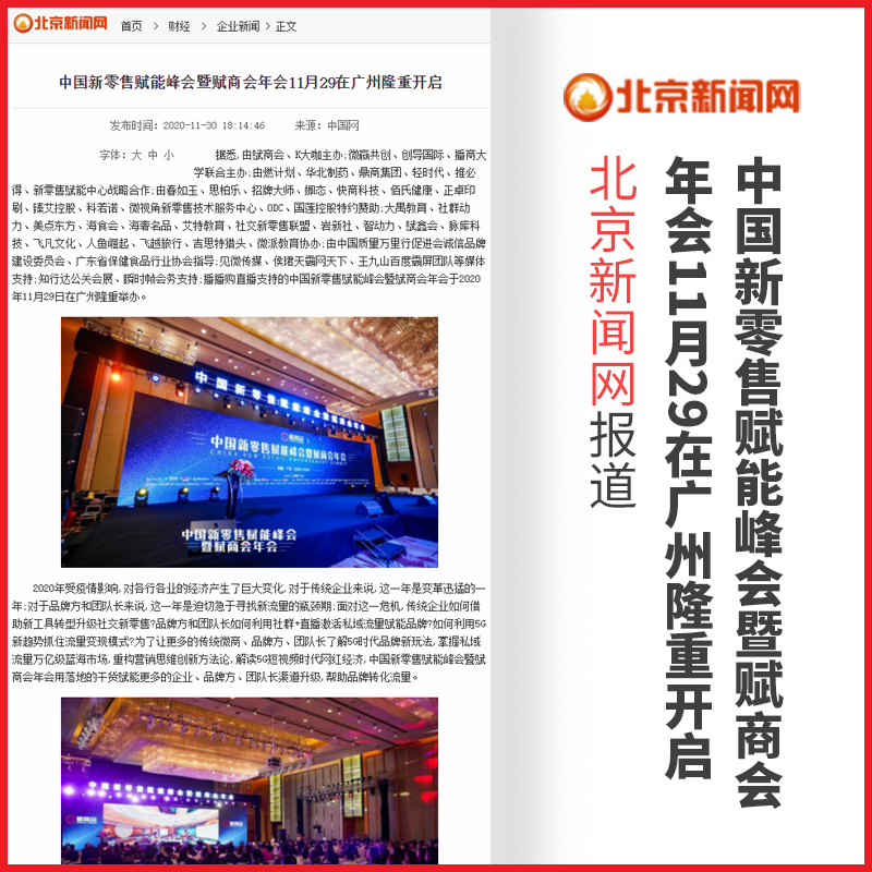 管鹏:中国新零售赋能峰会暨赋商会年会【新华能网】报道