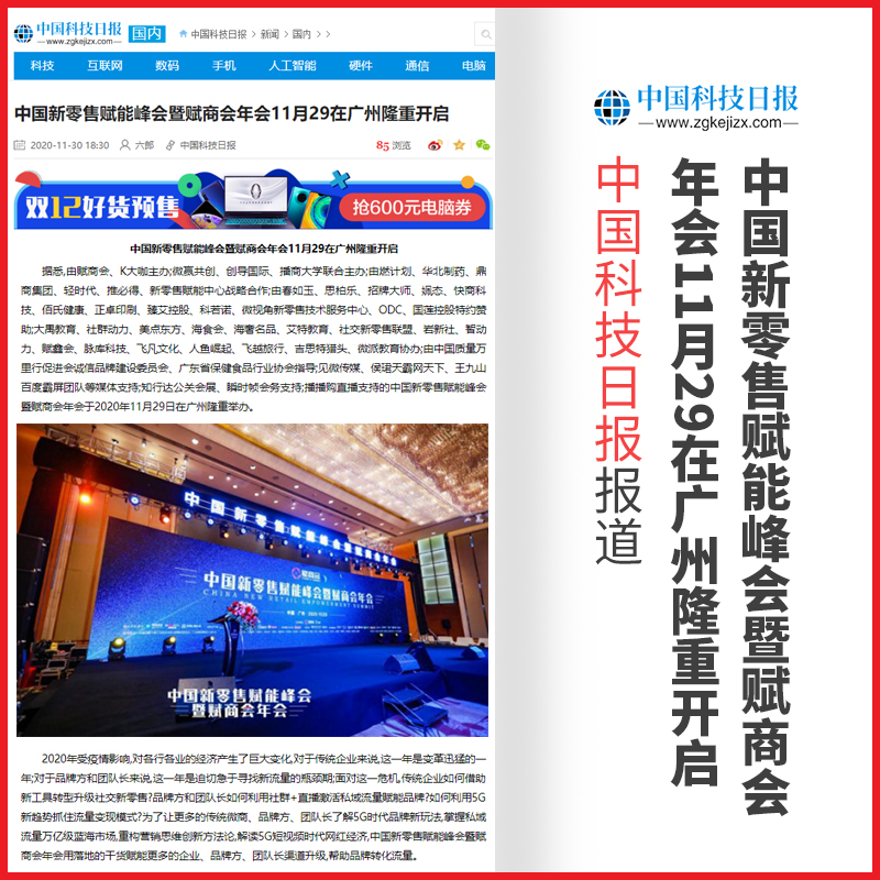 管鹏:中国新零售赋能峰会暨赋商会年会【中国科技日报】报道
