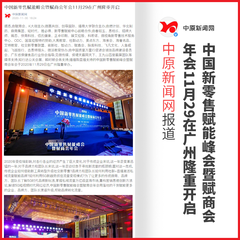 管鹏:中国新零售赋能峰会暨赋商会年会【中原新闻网】报道
