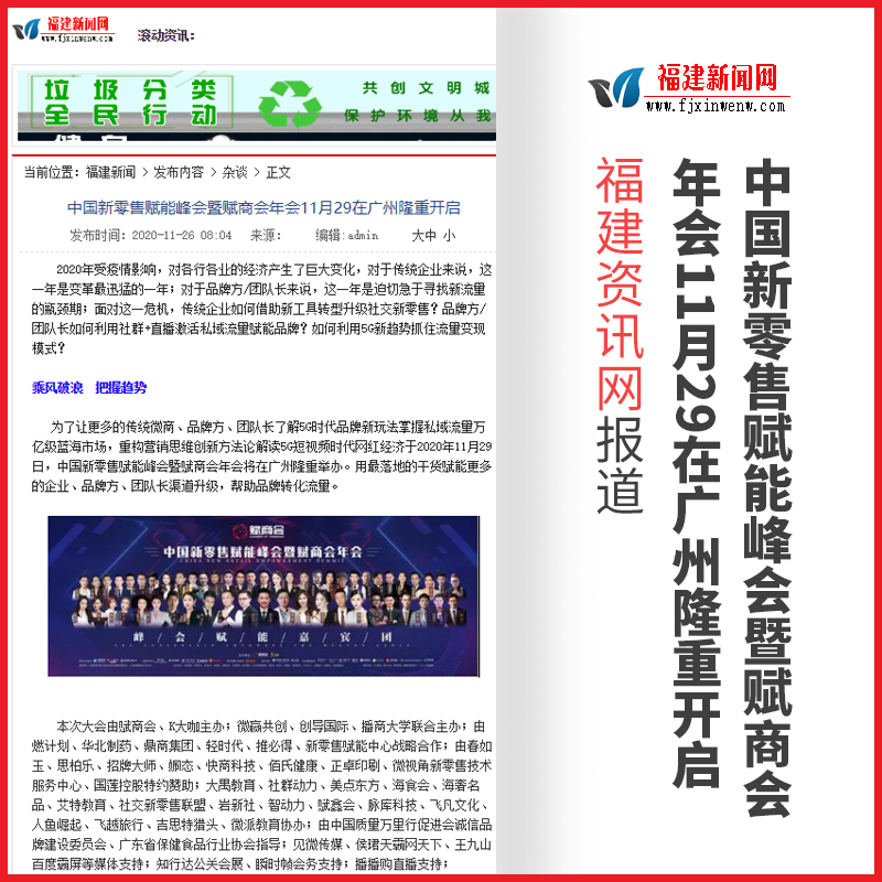 管鹏:中国新零售赋能峰会暨赋商会年会【福建资讯网】报道