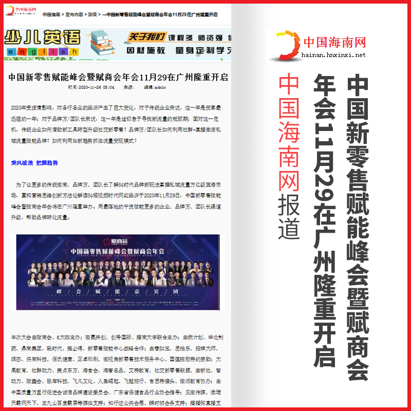 管鹏:中国新零售赋能峰会暨赋商会年会【中国海南网】报道