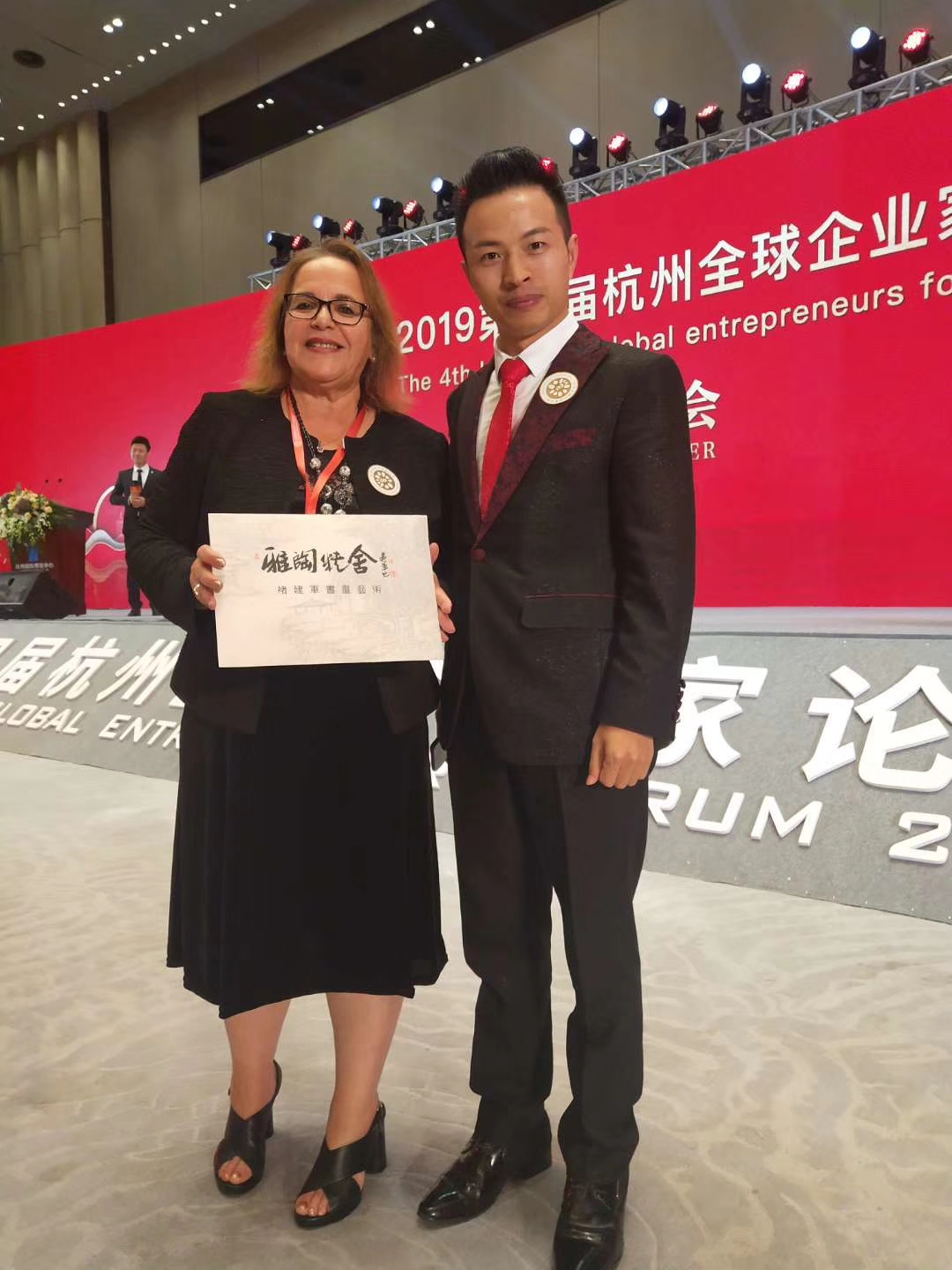 王洪波: 与——“中华全国工商联合会美容化妆品业商会会长”马娅合影