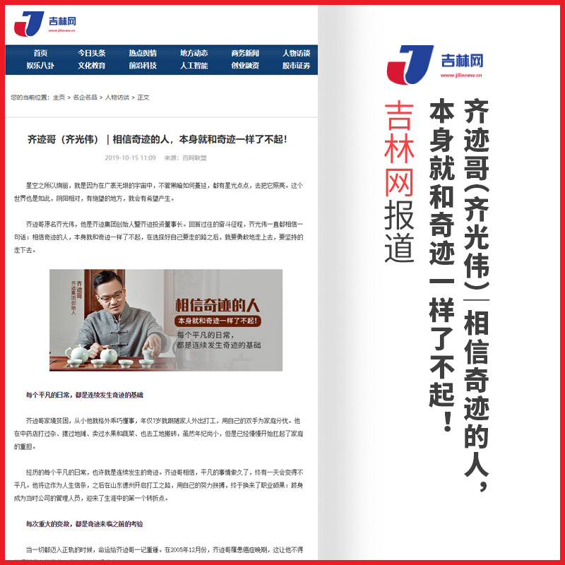 齐光伟:齐迹哥(齐光伟)|相信奇迹的人,本身就和奇迹一样了不起!【吉林网】报道