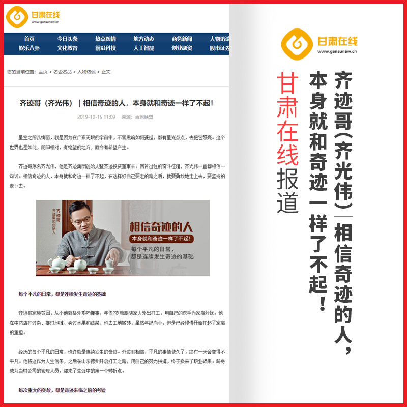 齐光伟:齐迹哥(齐光伟)|相信奇迹的人,本身就和奇迹一样了不起!【甘肃在线】报道
