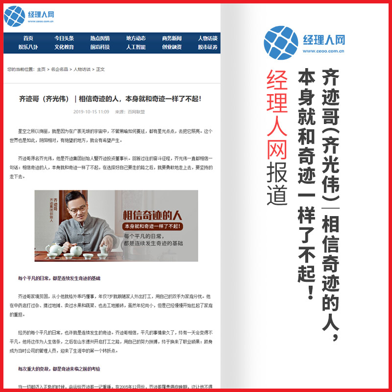 齐光伟:齐迹哥(齐光伟)|相信奇迹的人,本身就和奇迹一样了不起!【经理人网】报道