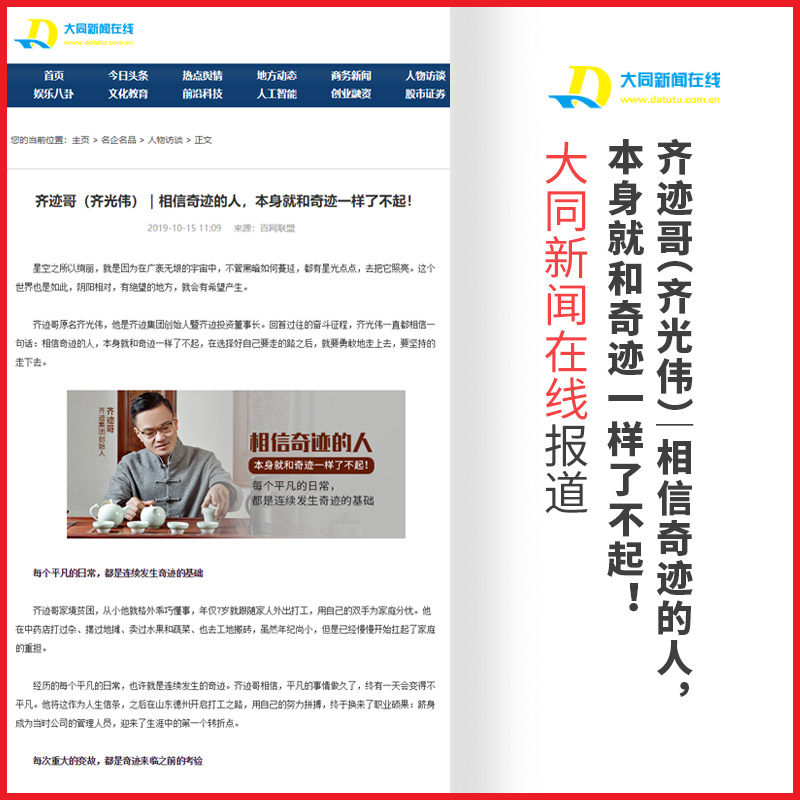 齐光伟:齐迹哥(齐光伟)|相信奇迹的人,本身就和奇迹一样了不起!【大同新闻在线】报道