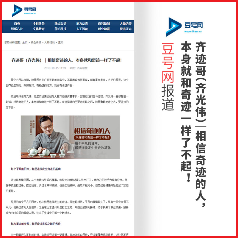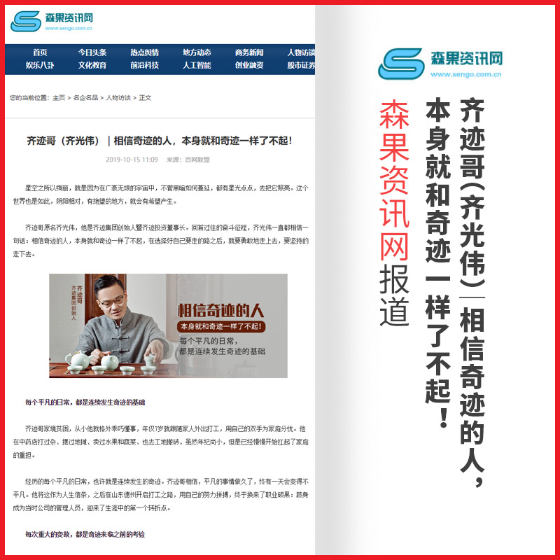 齐光伟:齐迹哥(齐光伟)|相信奇迹的人,本身就和奇迹一样了不起!【森果咨讯网】报道