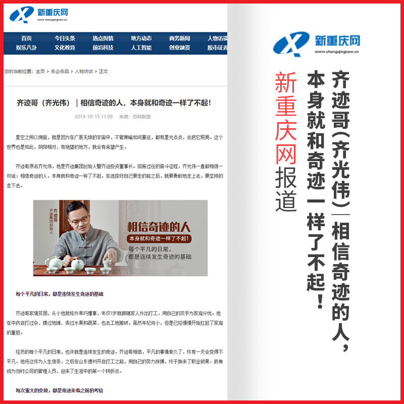 齐光伟:齐迹哥(齐光伟)|相信奇迹的人,本身就和奇迹一样了不起!【新重庆网】报道