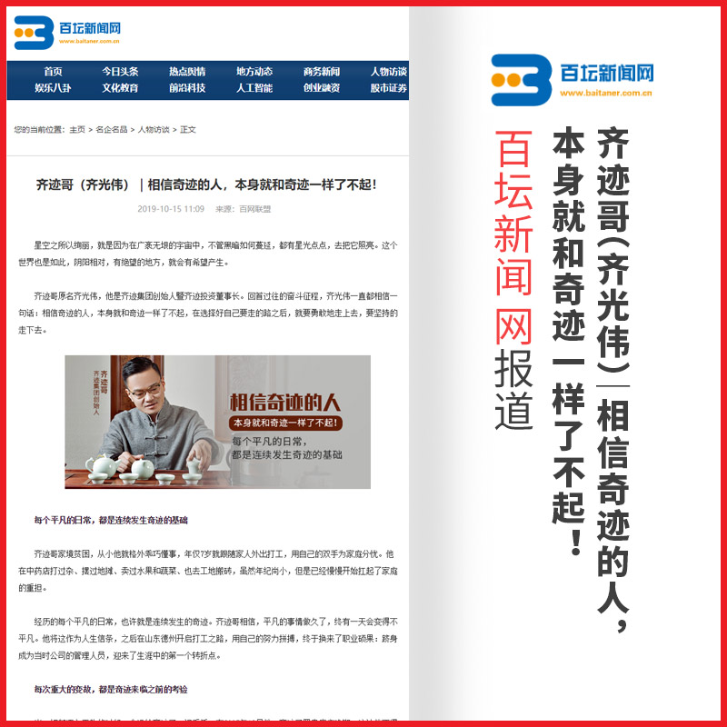 齐光伟:齐迹哥(齐光伟)|相信奇迹的人,本身就和奇迹一样了不起!【百坛新闻网】报道