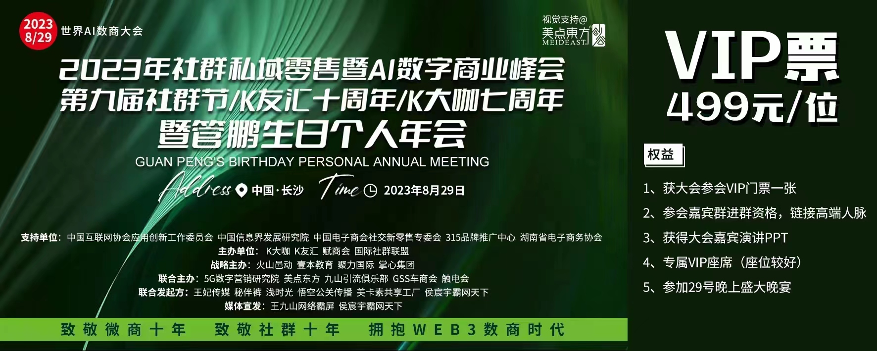管鹏:VIP门票,加入嘉宾群,链接高端人脉,专属坐席