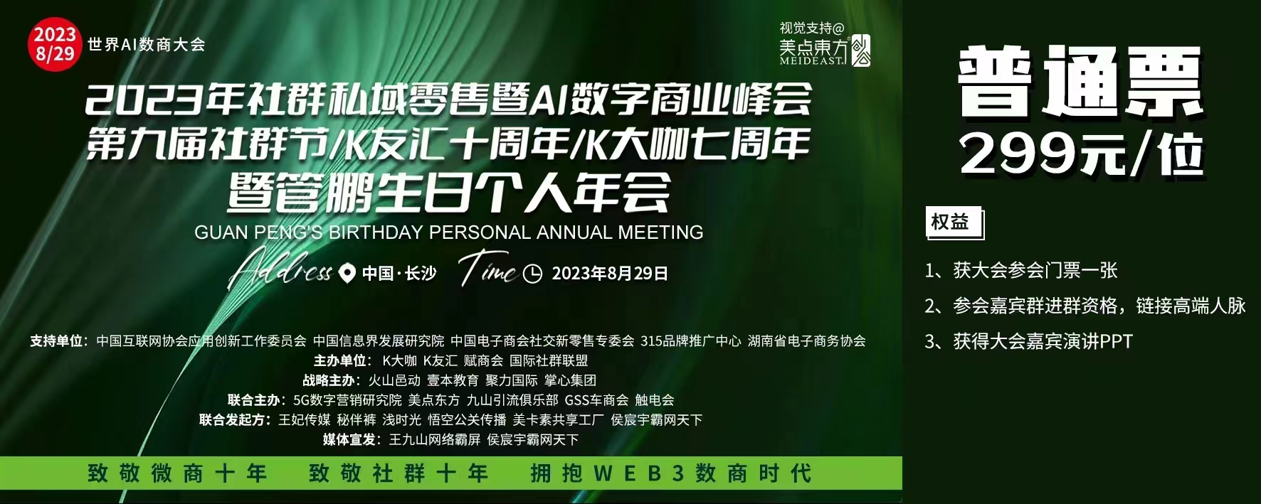 管鹏:普通门票,加入嘉宾群,链接高端人脉,获得嘉宾演讲PPT
