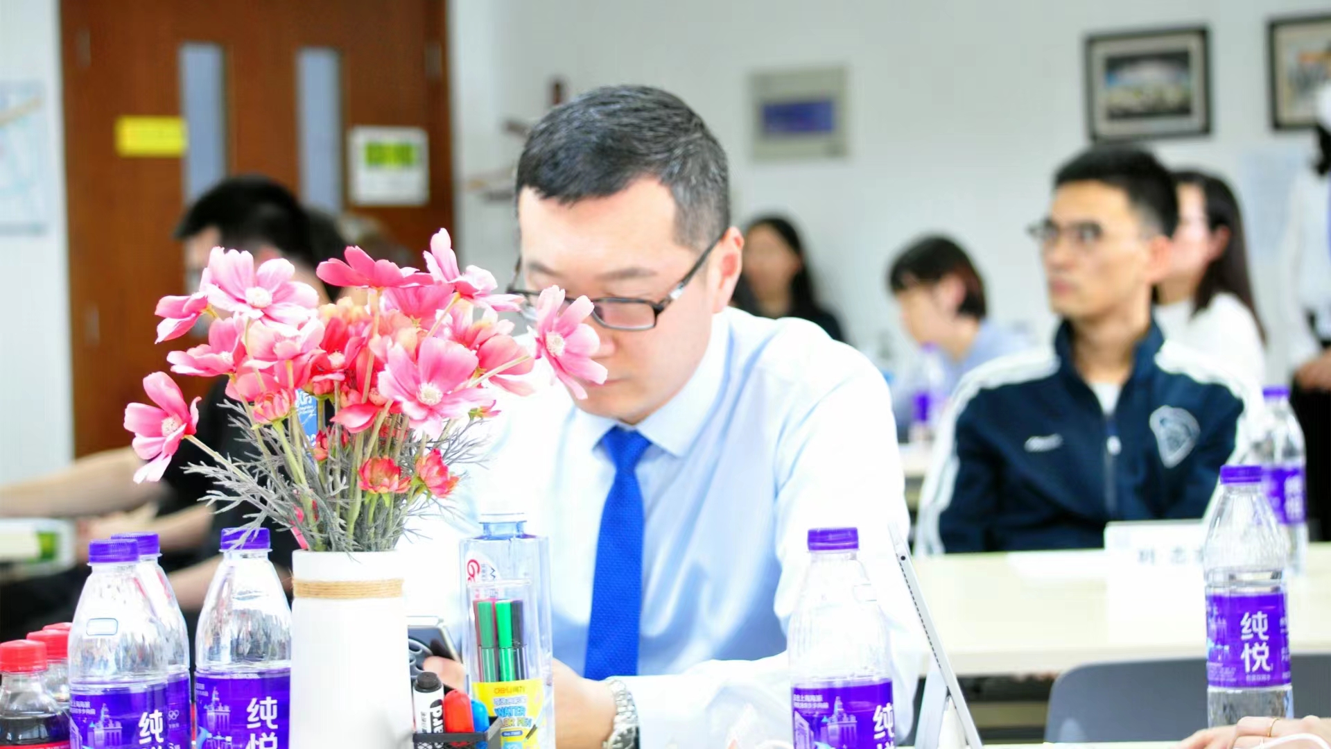 李洋:张超老师虚心的听别的老师讲述内容