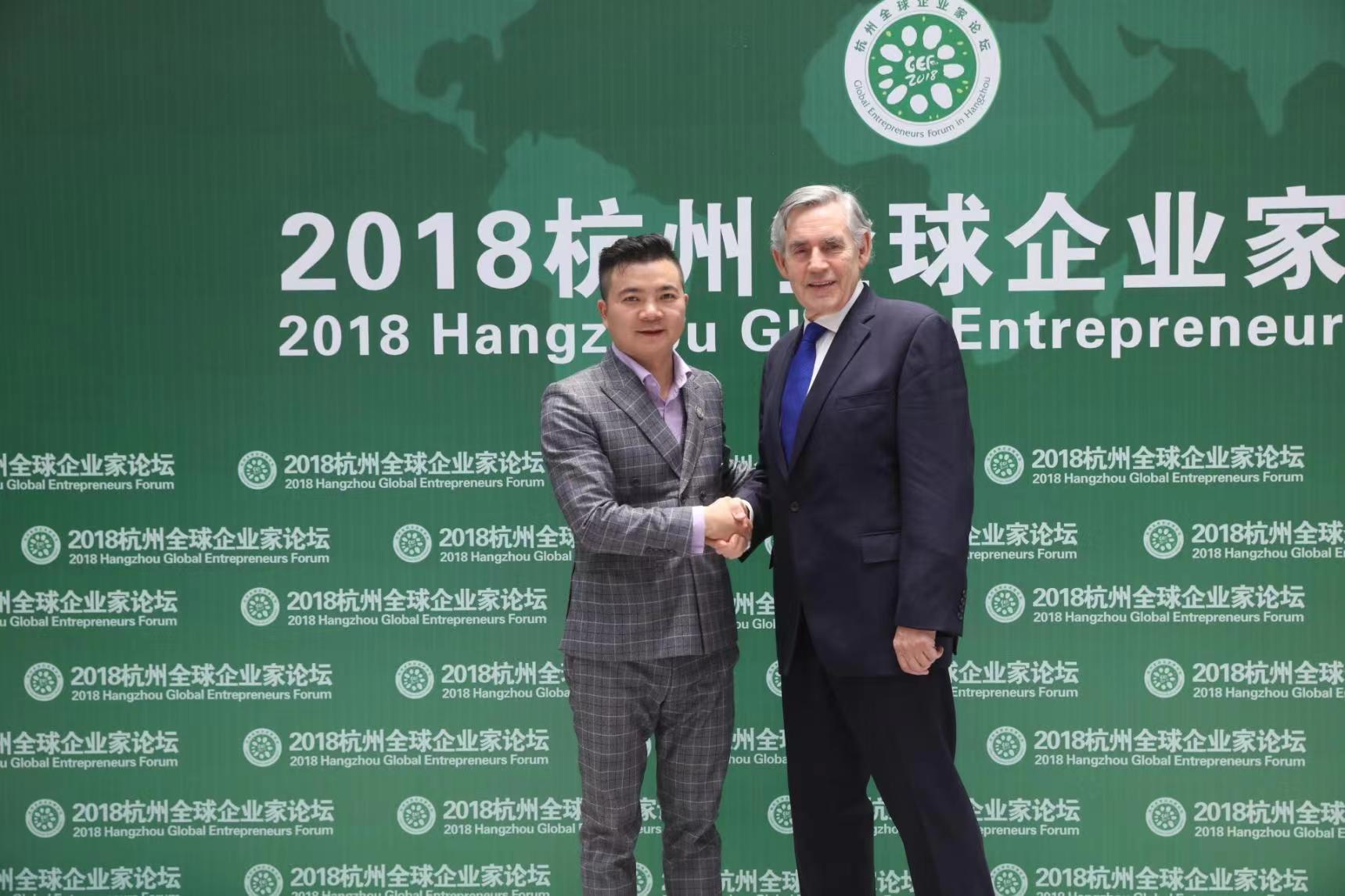 管鹏: 银志老师(左)和英国前首相伐登·布朗合影