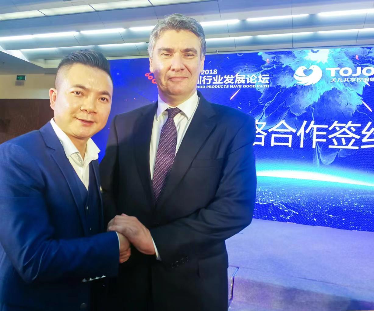 管鹏: 银志老师(左)和克罗地亚前总理佐兰·米拉诺维奇合影