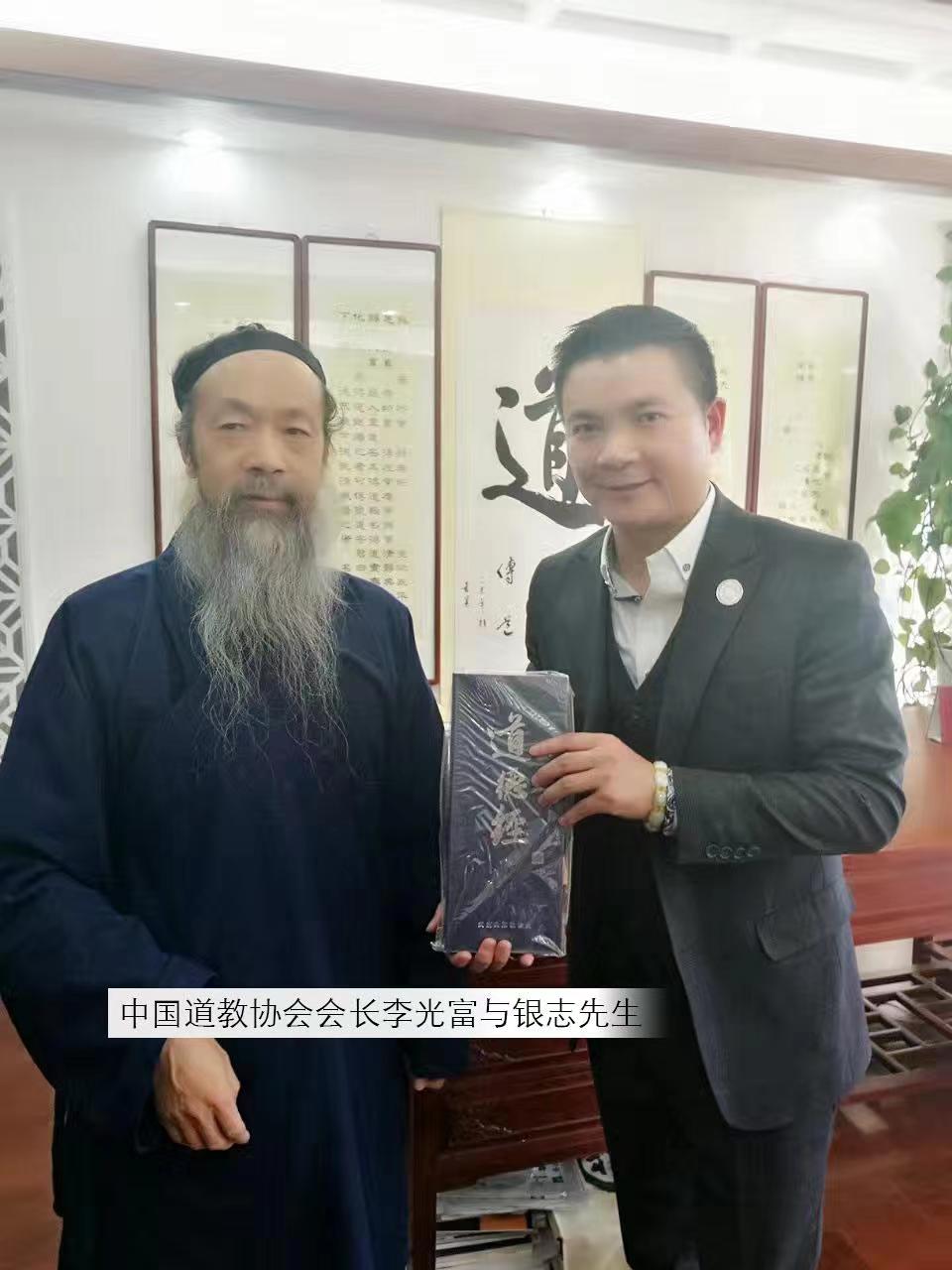 管鹏:银志老师(右)和中国道教协会会长李光富合影
