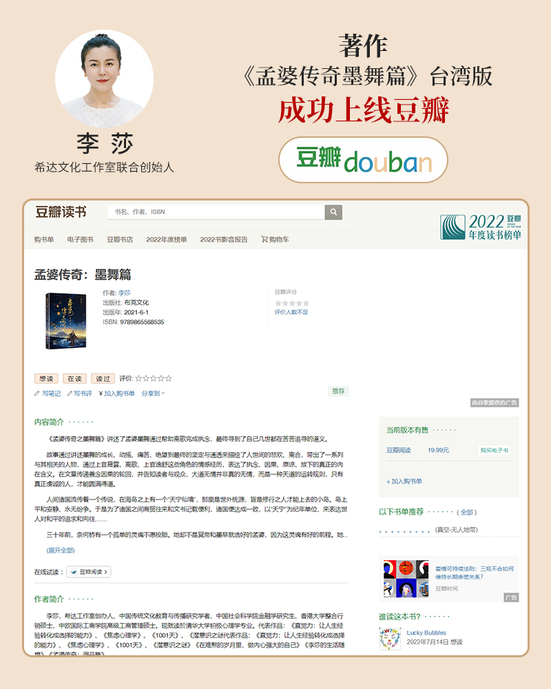 李莎:《孟婆传奇之墨舞篇》台湾版,成功上线豆瓣平台